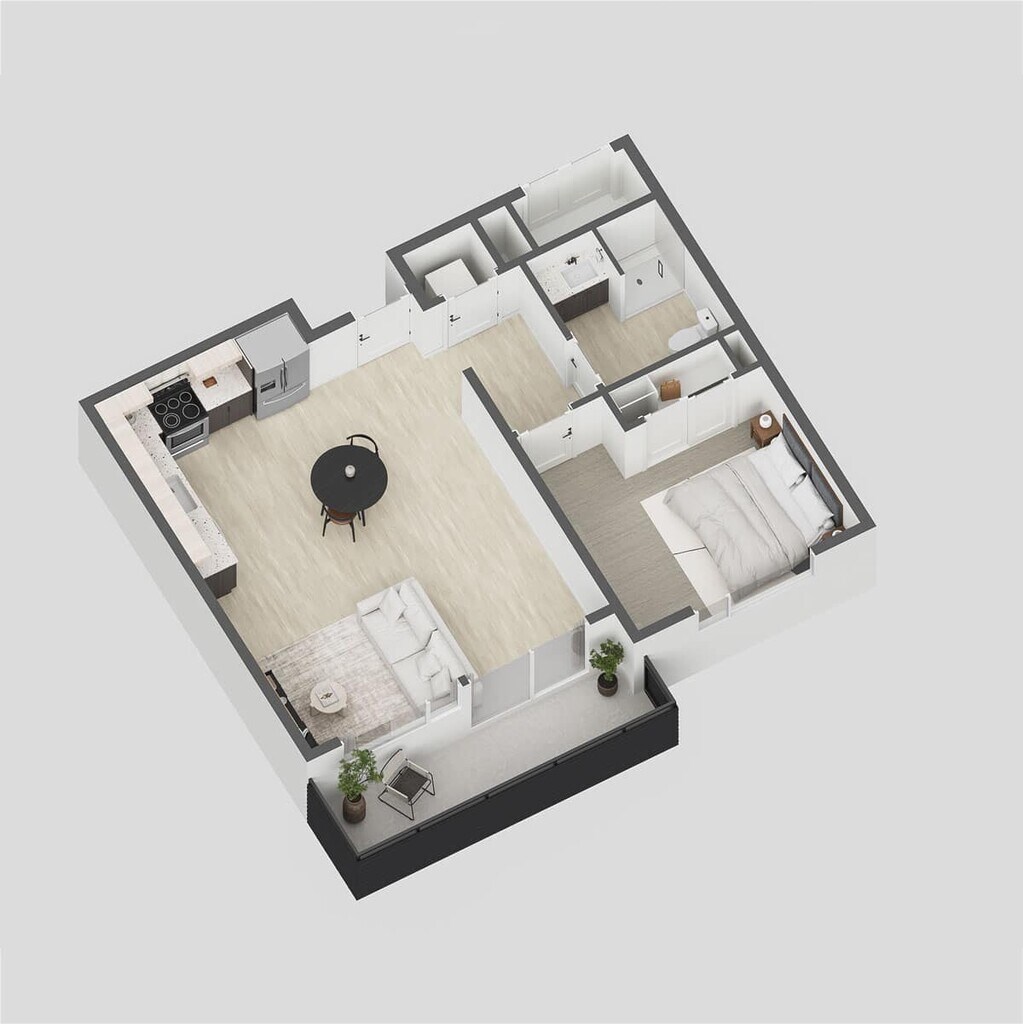 1 Bed, 1 Bath, 740 sq ftModel Gallery