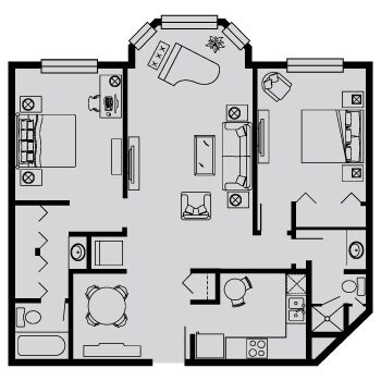 2 Beds, 2 Baths, 1100 sq ftPlus FeesAvailable NowModel Gallery