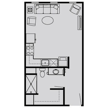 Studio, 1 Bath, 422 sq ftPlus FeesAvailable NowModel Gallery