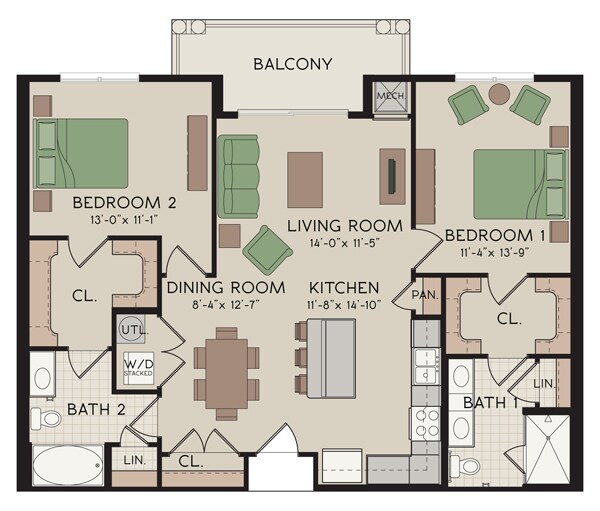 2 Beds, 2 Baths, 1161 sq ftAvailable NowCheapest 2 BedroomThis is the cheapest 2 Bedroom at this PropertyModel Gallery