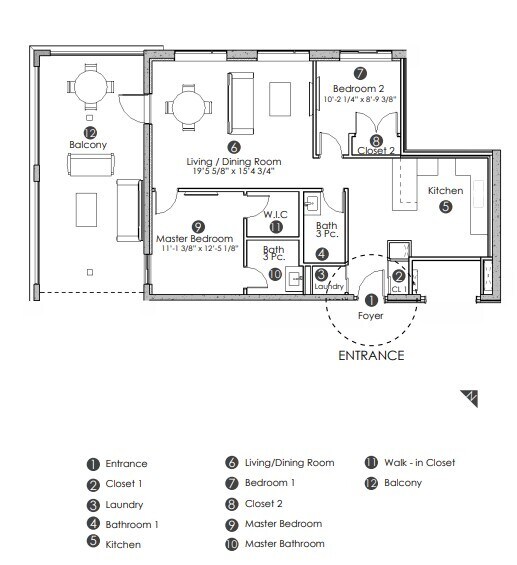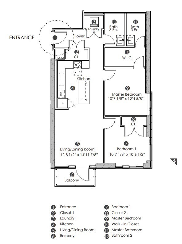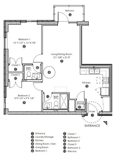 2 Bed, 2 Bath - Waterloo Suite - Floorplan 2 2 Bed, 2 Bath - Kent Suite