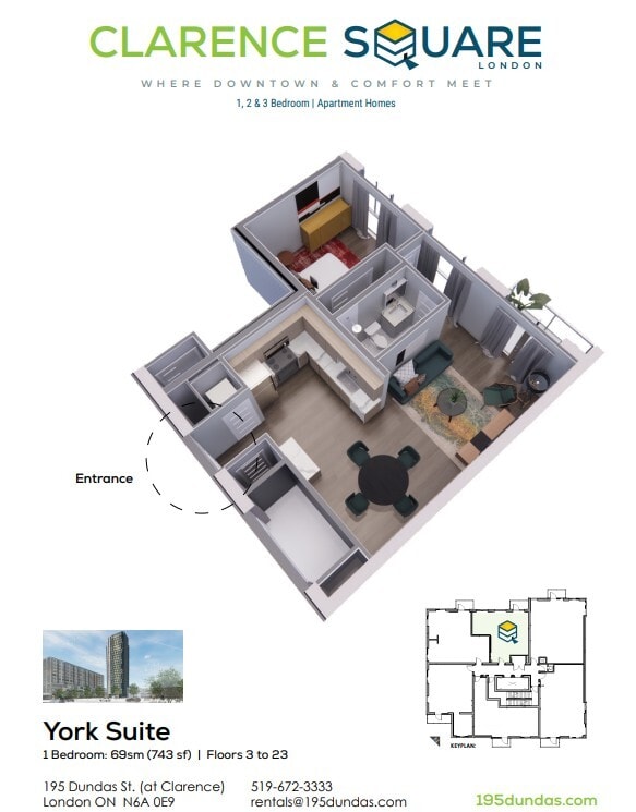 Clarence Square: Modern Living in the Heart of London, Ontario Discover Clarence Square, a boutique apartment community offering stylish one, two, and three-bedroom homes with high ceilings, large windows, and modern finishes like Energy Star stainless steel appliances and quartz countertops. Enjoy luxury amenities including a games room, golf simulator, yoga room, gym, library, and steam room, plus a rooftop BBQ area with stunning views. Conveniently located within walking distance of Covent Garden Market and Budweiser Gardens, and surrounded by restaurants, shops, and cafes, you'll have everything you need right at your doorstep. Benefit from underground parking, bike routes, public transit, and the nearby VIA train station for easy travel. Clarence Square combines a prime location with modern living and unmatched convenience in the heart of London.