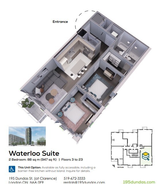 2 Bed, 1.5 Bath - Talbot Suite - Floorplan 2 2 Bed, 2 Bath - Waterloo Suite