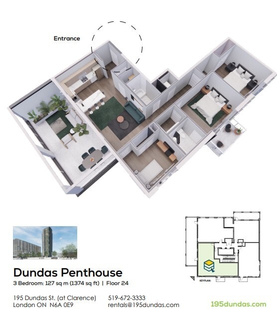 3 Bed, 2 Bath - Dundas Penthouse - Floorplan 2