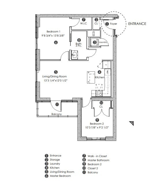 2 Bed, 2 Bath - Kent Suite - Floorplan 1 ![]()