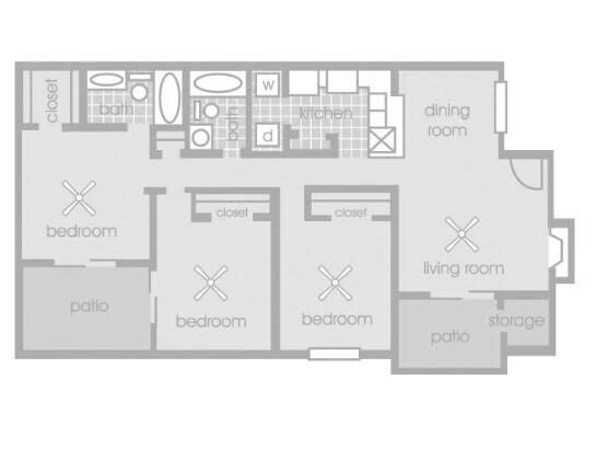 Apartment Model: 3 Bed, 2 BathFrom $1,3003 Bedroom, 2 Bath, 1050 sq ftAvailable NowFloorplansPhotos![]()