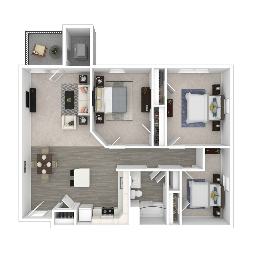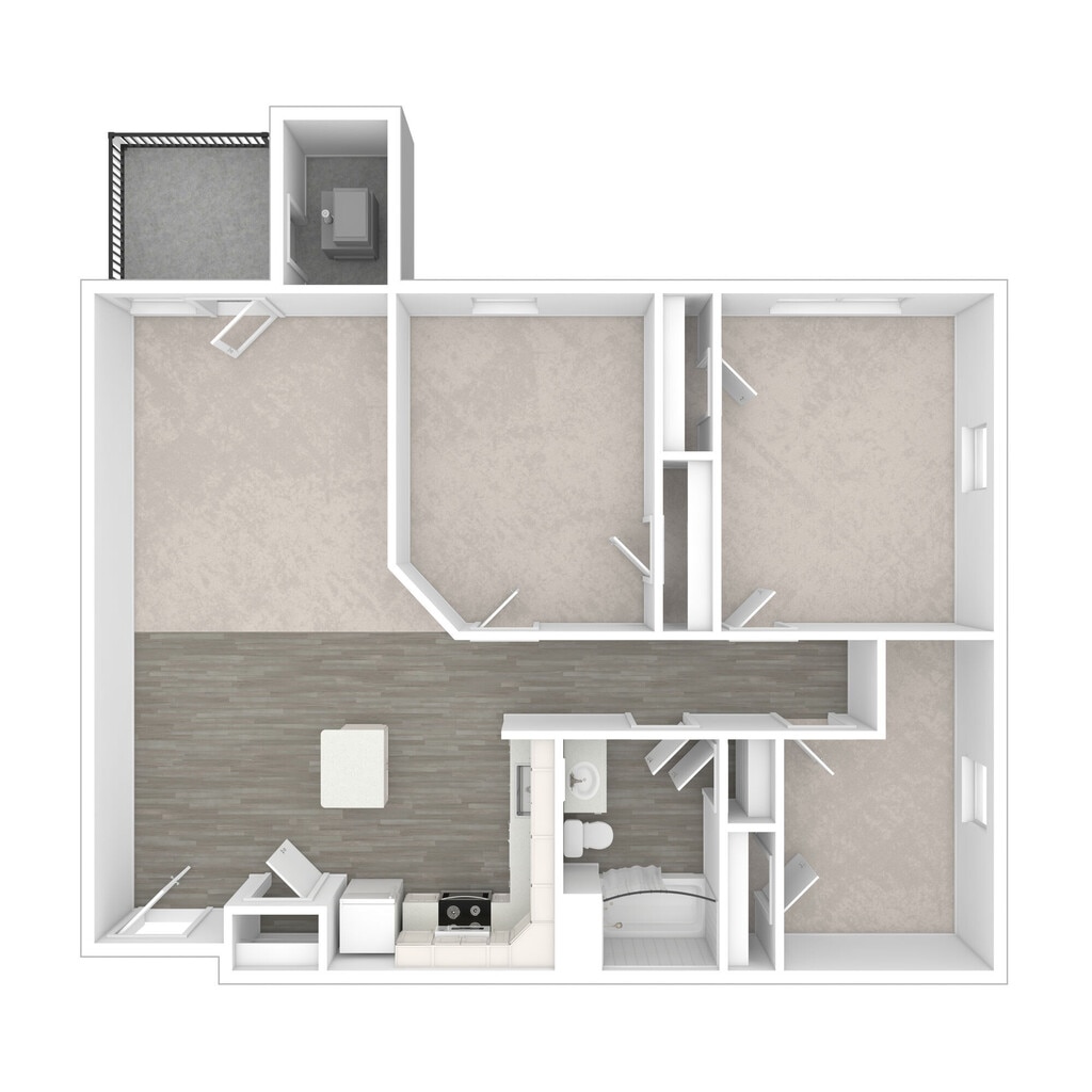 3 BDR - Floorplan 3 Apartment Unit: 303Apartment Model: 3 BDR$2,3503 Bedroom, 1 Bath, 1148 sq ftAvailable Now3 BD