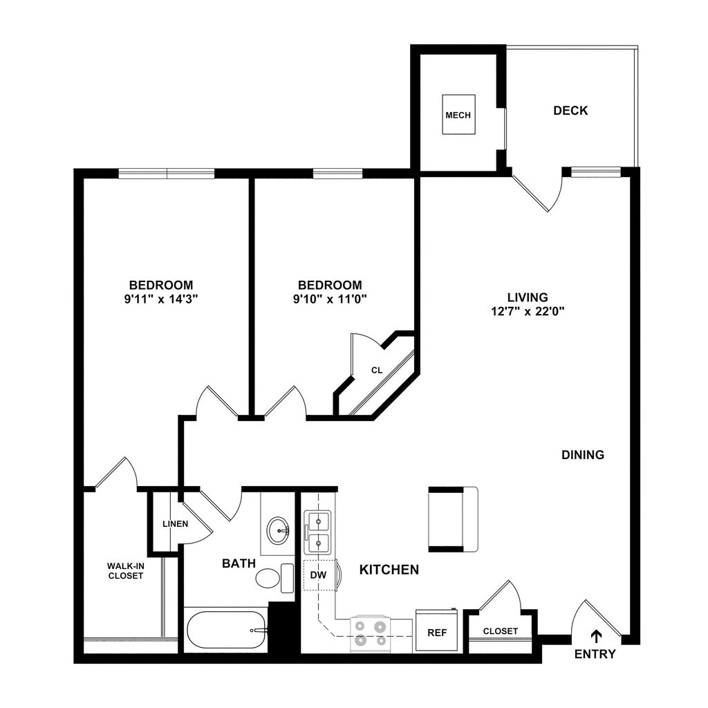 2 Beds, 1 Bath, 985 sq ftAvailable NowModel Gallery