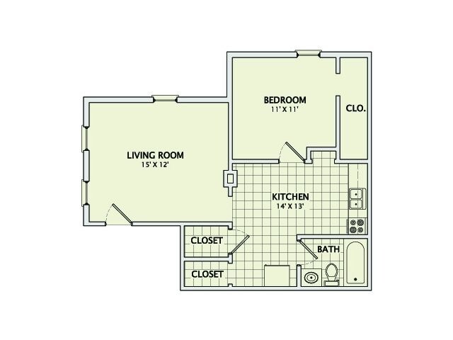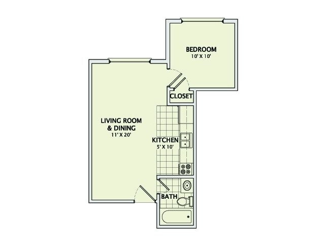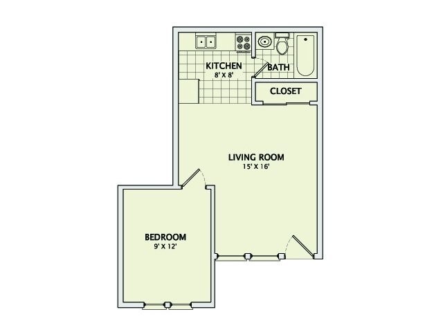 Apartment Model: #81 Bedroom, 1 Bath, 461 sq ftUnavailable![]()
