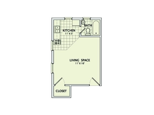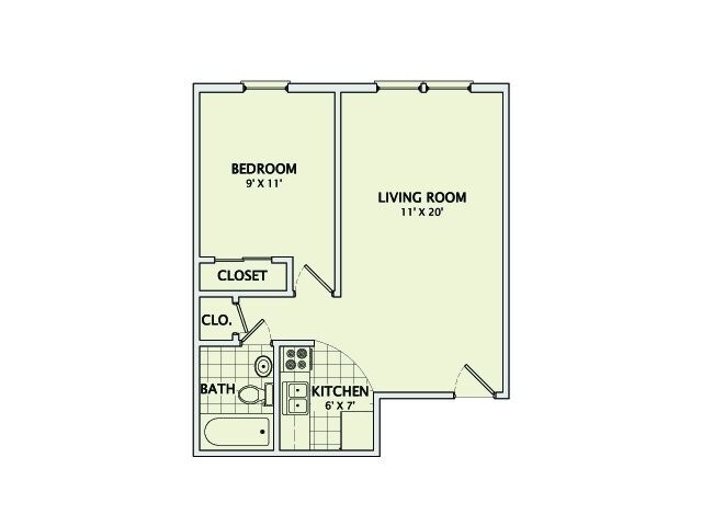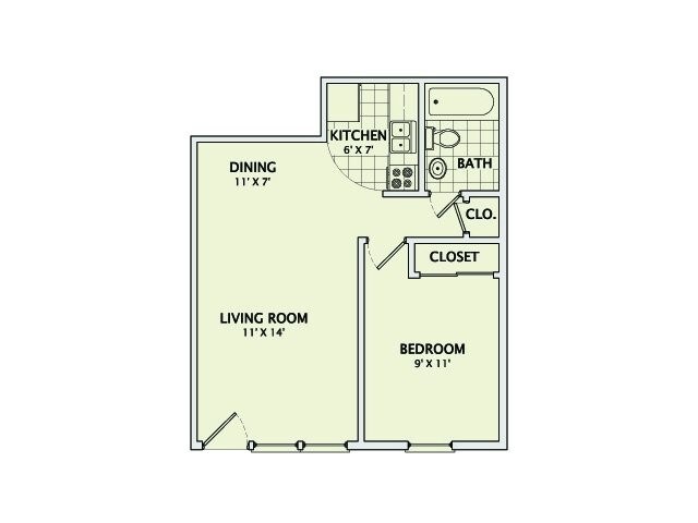 Apartment Model: #41 Bedroom, 1 Bath, 424 sq ftUnavailable![]()