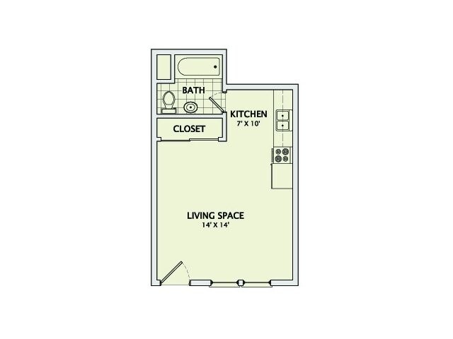 Apartment Model: #2Studio, 1 Bath, 309 sq ftUnavailable![]()