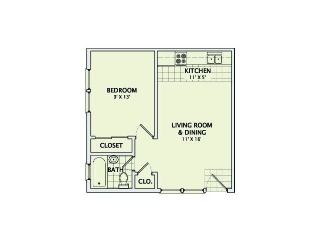 Apartment Model: #122 Bedroom, 1 Bath, 582 sq ftUnavailable![]()