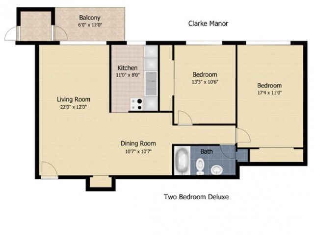 1 Bedroom to 3 Bedroom Apartments at Clarke Manor currently range from $1,319 to $2,049