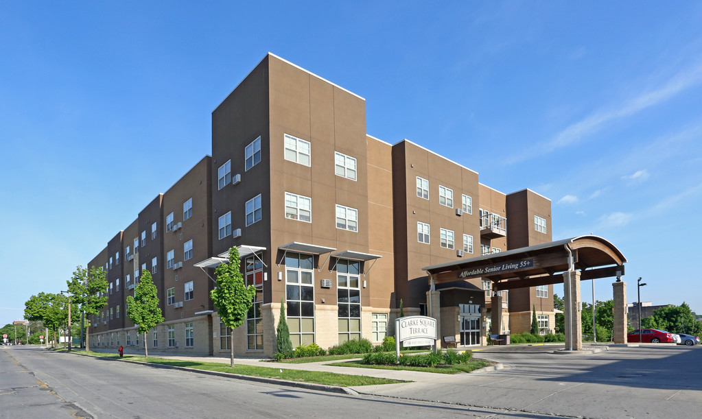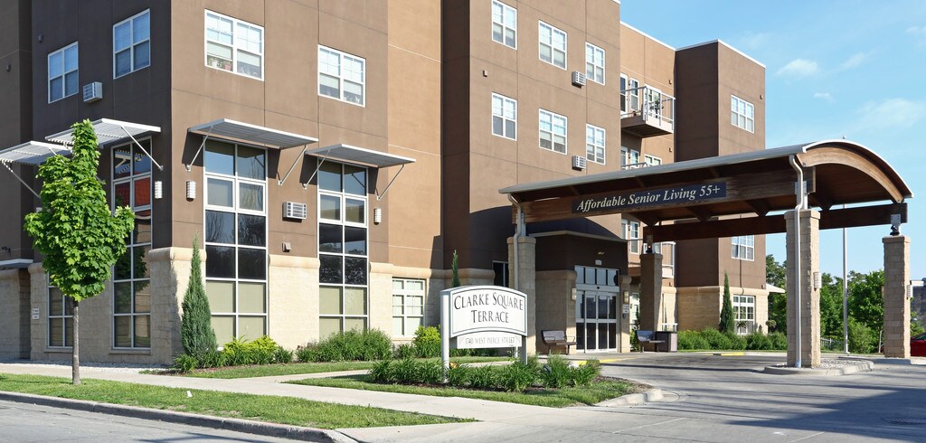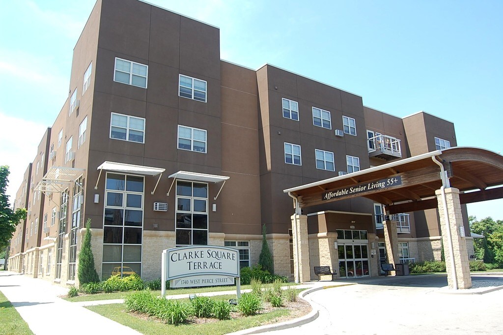 Clarke Square Terrace provides affordable studio, one-bedroom, and two-bedroom apartments for those 55 and older in the heart of Milwaukee, WI. Our community location means is just minutes away from downtown Milwaukee and historic neighborhoods like Walkers Point, plus shops, restaurants, and attractions. Clark Square Terrace offers an array of amenities including a fitness center, computer room, library, community room, and country store. Clarke Square Terrace is a pet-friendly, non-smoking community. Heat, water, trash, and sewer utilities are included, as is additional storage space for each unit. There is a laundry room on each floor.