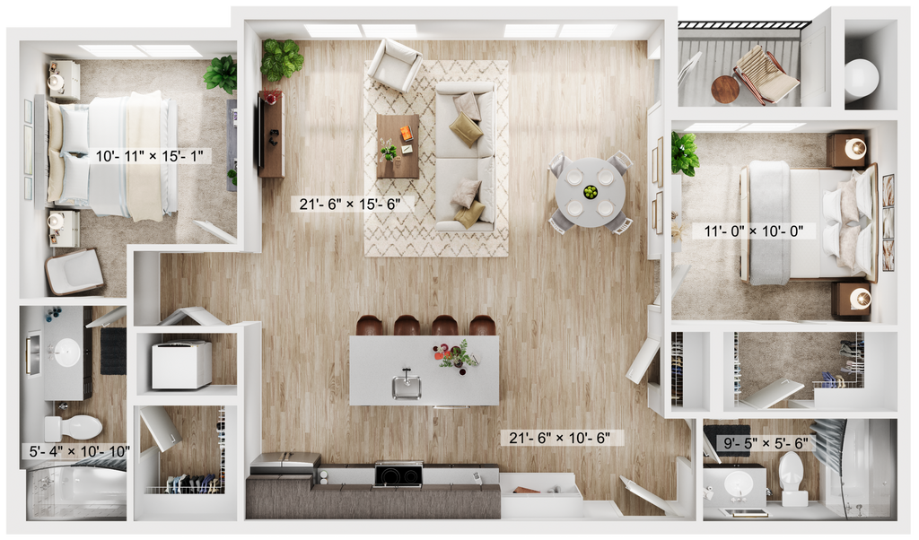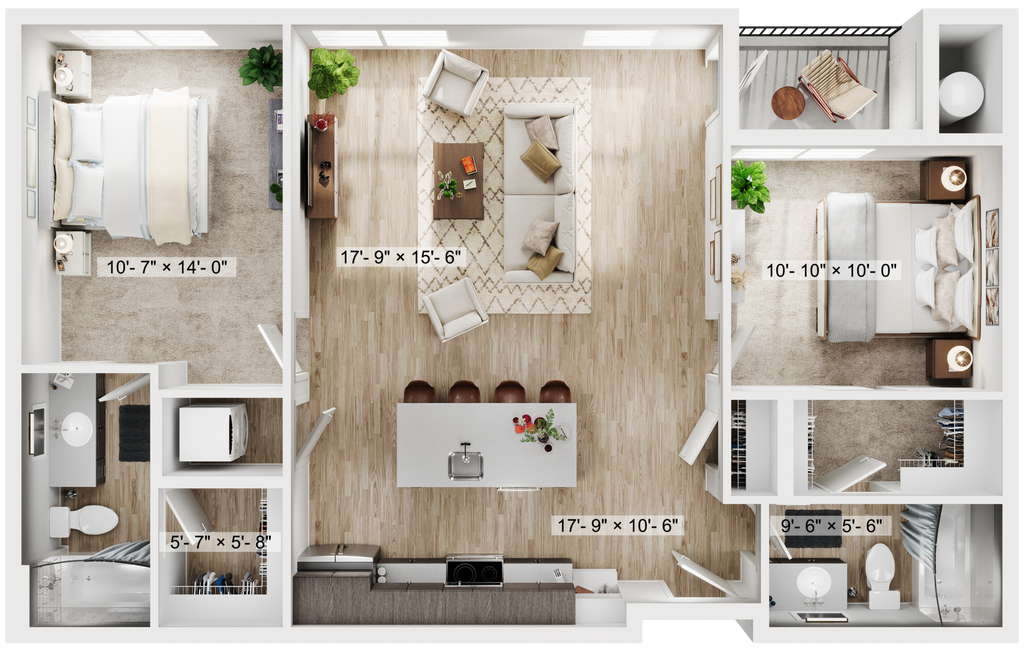 Apartment Model: 2BR/2BA B1From $2,1002 Bedroom, 2 Bath, 1021 sq ftAvailable Now![]()