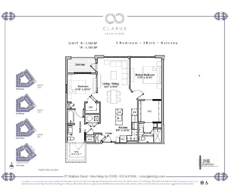 Various Floorplans for each size apartment. Price ranges will vary by floorpan and availability. One, one + den and two bedroom rentals next to Bay St Train Station, Montclair! Experience the meaning of Clarus, with thoughtfully planned amenity areas, luxurious living spaces and exquisite finishes, all designed to meet modern lifestyle needs. Clarus’s exceptional amenities includes numerous social spaces, business center with private conference rooms, theater, and billiards lounge, to state-of-the-art fitness center, dog run and everything in between. Each resident has the option in reserving two parking spaces in the covered parking garage. Spaces are assigned and the parking garage offers residents direct access to their floor. Clarus offers unparalleled extras inside and out. The Clarus experience extends beyond the community into downtown Glen Ridge and Montclair. Convenient to historic Downtown Montclair, always alive with eclectic shopping, restaurants, and culture. Exciting nightlife is illuminated by gaslights that date back to the late 1800’s. With many train stations nearby and direct highway access, experience the best aspects of suburban and urban living with New York City just 17 miles away.
