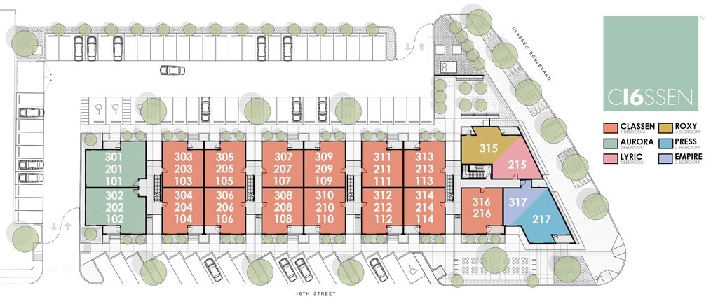 Classen 16 Developed by locals with a passion for Oklahoma City, Classen 16 was thoughtfully designed with the goal of providing residents with a more personal feel and true neighborhood experience. There are plenty of large apartment complexes around town, but Classen 16 seeks to be different. Welcome to all those who are looking for a unique place to call home!