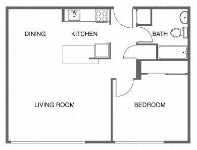 1 Bed, 1 Bath A - Floorplan 1 Renovated 1 Bed, 1 Bath