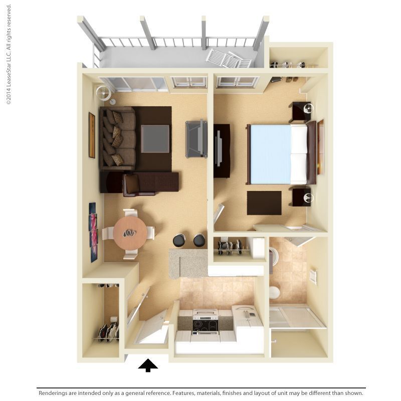 Medium 1 Bed 1 Bath - Floorplan 2 Floor plans are artist's rendering. All dimensions are approximate. Actual product and specifications may vary in dimension or detail. Not all features are available in every rental home. Prices and availability are subject to change. Base rent is based on monthly frequency. Additional fees may apply, such as but not limited to package delivery, trash, water, amenities, etc. Deposits vary. Please see a representative for details.