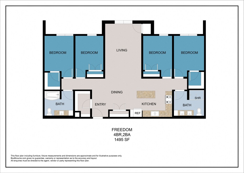 Adventure - Floorplan 1 Apartment Unit: 315Apartment Model: Adventure4 Bedroom, 2 Bath, 1419 sq ftAvailable NowFreedom