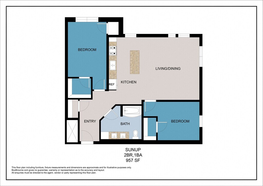 Sunrise - Floorplan 1 Apartment Unit: 305Apartment Model: Sunrise2 Bedroom, 1 Bath, 925 sq ftAvailable December 31, 2025Morning