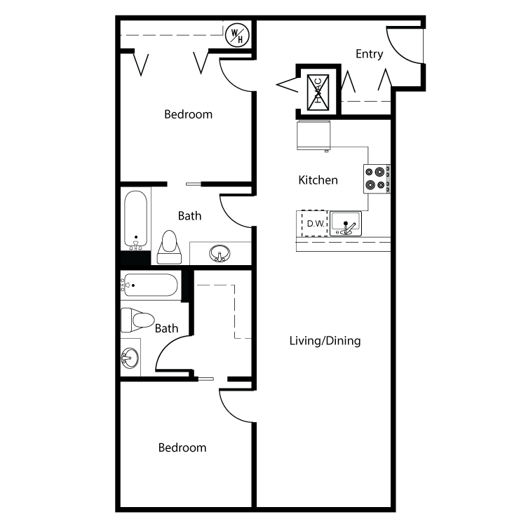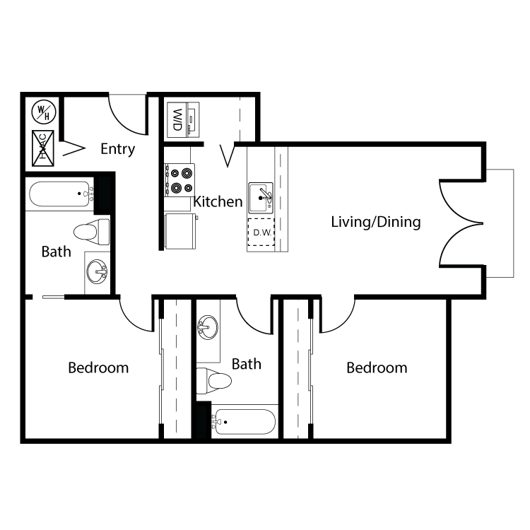 Apartment Model: Clearwater 2 Bed 2 Bath DCall For Rates2 Bedroom, 2 Bath, 780 sq ftUnavailableClearwater 2 Bed 2 Bath D - Floorplan 1 Clearwater 2 Bed 2 Bath C