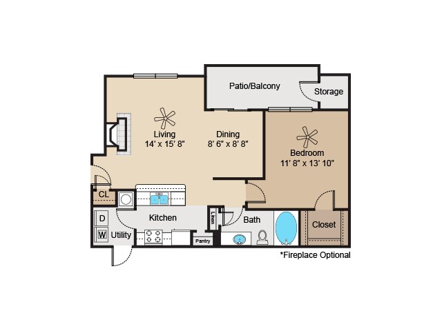 1 Bed, 1 Bath, 813-844 sq ftAvailable NowLargest 1 BedroomThis is the largest 1 Bedroom at this PropertyModel Gallery