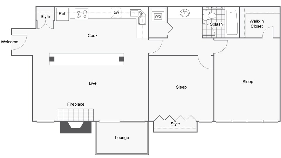 1 Bed, 1 Bath, 684 sq ftAvailable NowModel Gallery