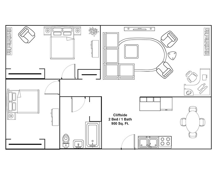 Cliffside Apartments offers 1 to 2 Bedroom apartments starting from $799 and having 600–900 sq ft. Here is the current pricing and availability: