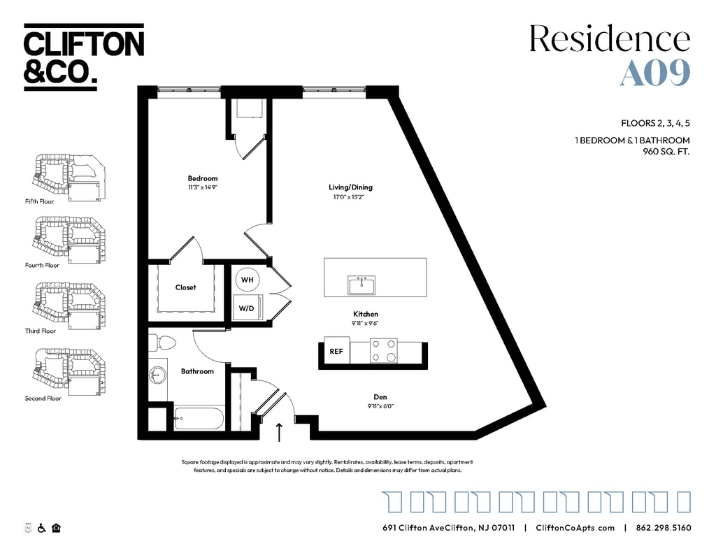 Clifton & Co offers Studio to 2 Bedroom apartments starting from $2,280 and having 573–1,359 sq ft. Here is the current pricing and availability: