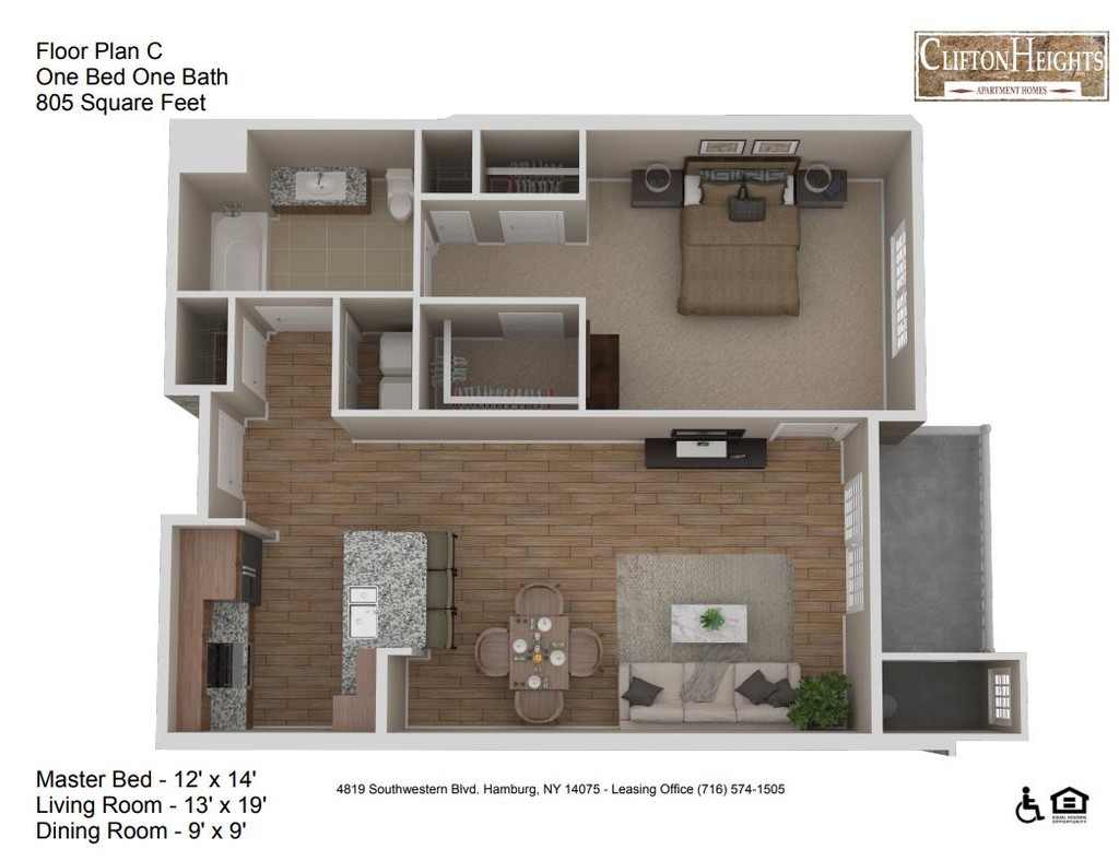 Apartment Model: 1C1 Bedroom, 1 Bath, 805 sq ftUnavailable![]()