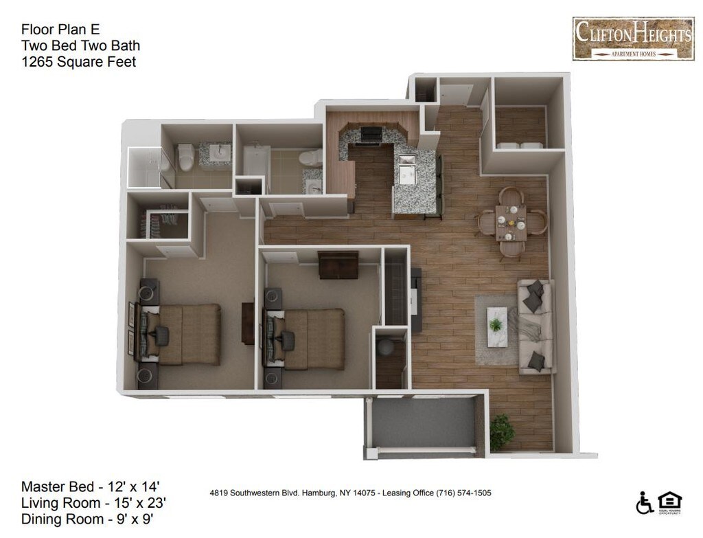 Apartment Model: 2E2 Bedroom, 2 Bath, 1265 sq ftUnavailable![]()