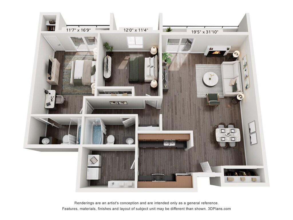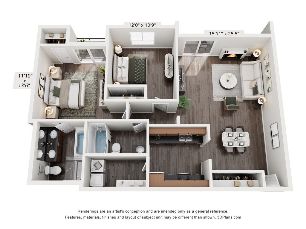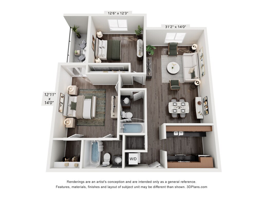 2 Bed, 2 Bath B - Floorplan 1 2 Bed, 2 Bath C