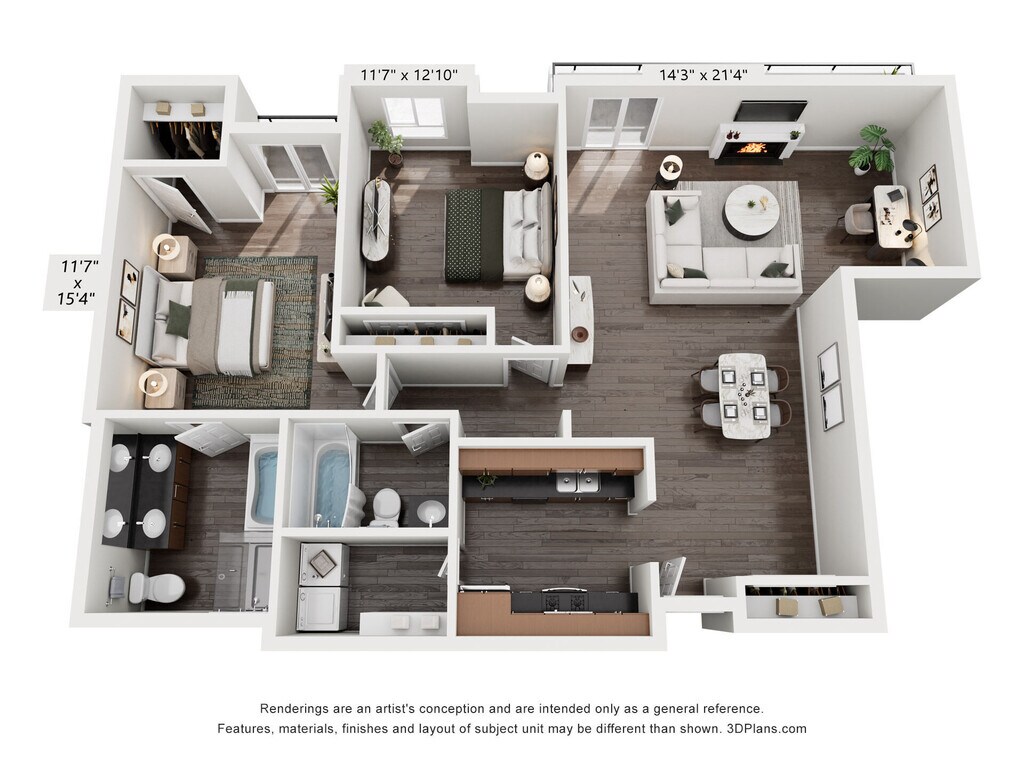 2 Beds, 2 Baths, 1214 sq ftModel Gallery