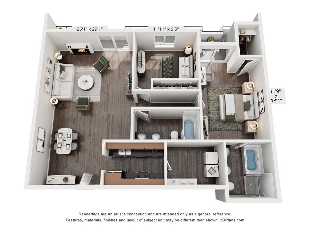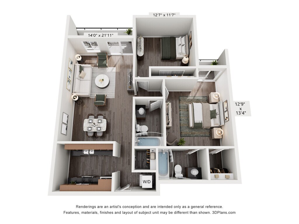 2 Beds, 2 Baths, 1221 sq ftModel Gallery