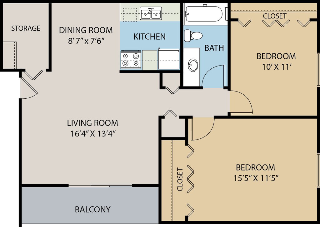 2 Beds, 1 Bath, 900 sq ftAvailable NowModel Gallery