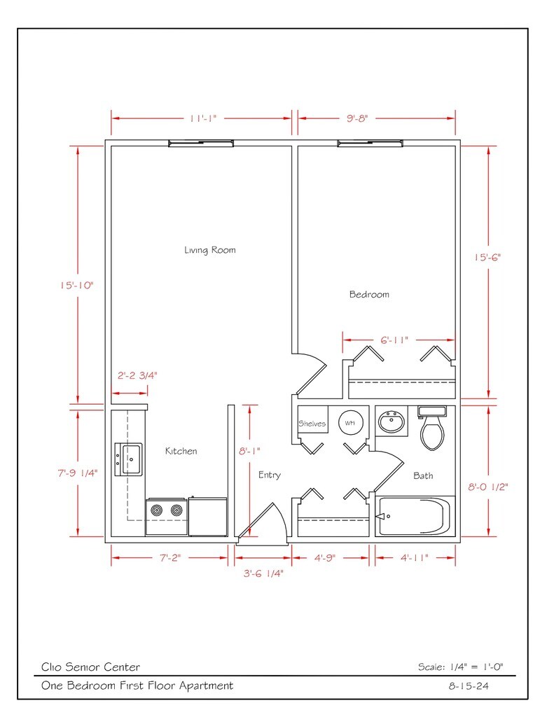 Clio Senior Village offers 1 Bedroom apartments starting from $599 and having 650 sq ft. Here is the current pricing and availability: