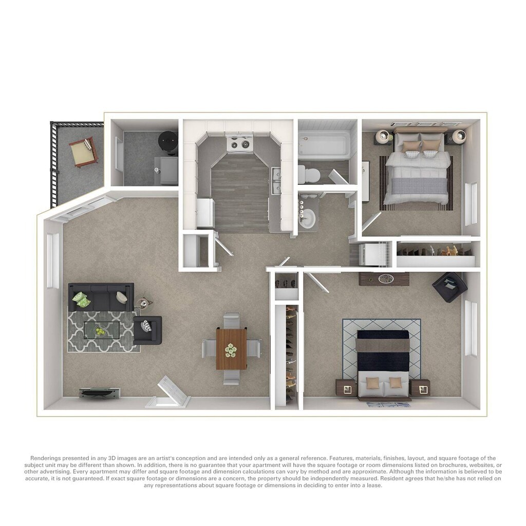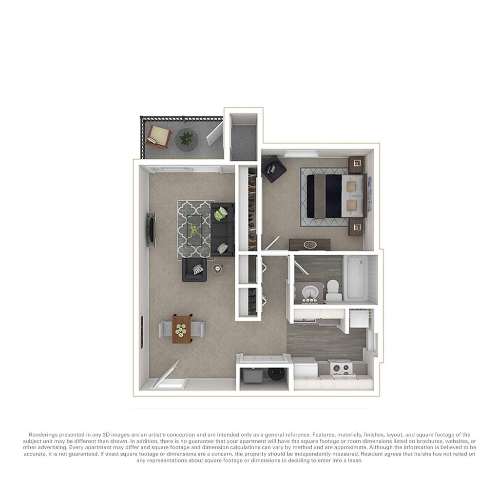 Apartment Model: 1x1 UpgradedFrom $1,2641 Bedroom, 1 Bath, 750 sq ftAvailable NowFloor plans are artist's rendering. All dimensions are approximate. Actual product and specifications may vary in dimension or detail. Not all features are available in every rental home. Please see a representative for details.