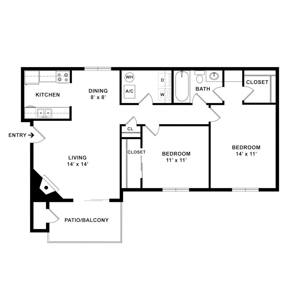2 Beds, 1 Bath, 860 sq ftAvailable NowModel Gallery