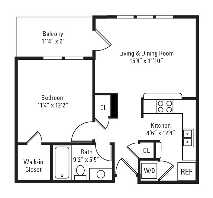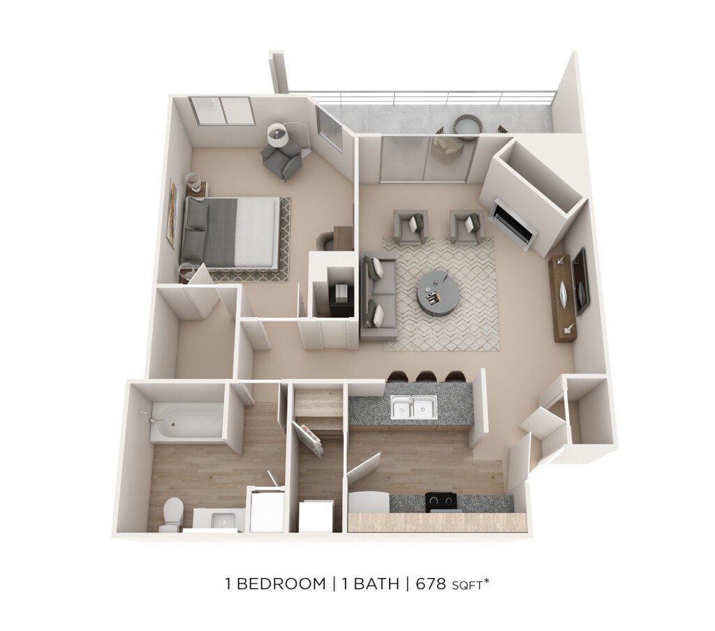 Apartment Model: One Bedroom - 572 sqftFrom $1,3401 Bedroom, 1 Bath, 572 sq ftAvailable November 7, 2025![]()