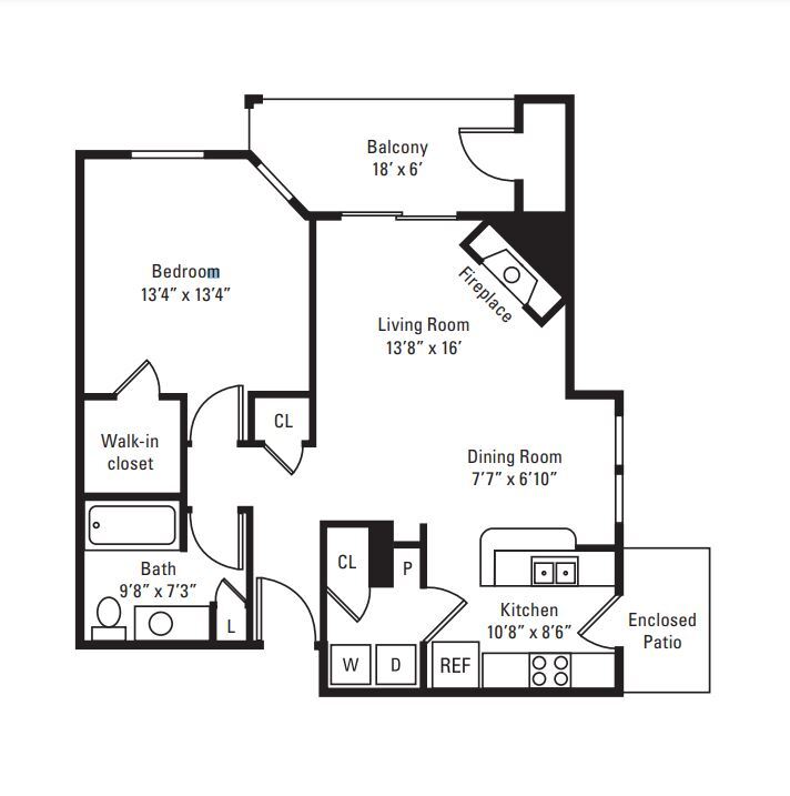 One Bedroom - 572 sqft - Floorplan 1 ![]()