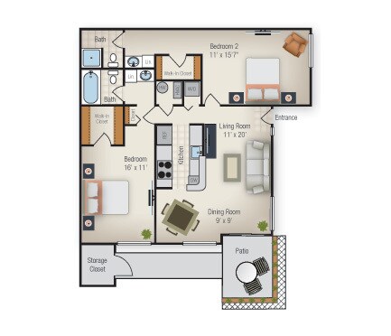 2 Beds, 2 Baths, 1050 sq ftAvailable NowModel Gallery