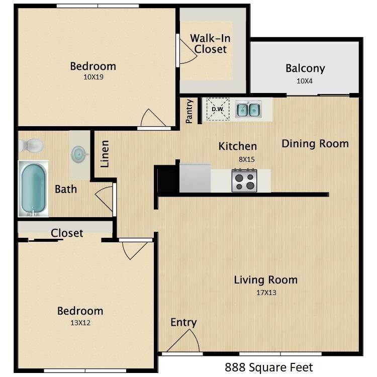 2 Beds, 1 Bath, 770 sq ftAvailability Details