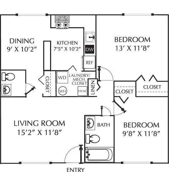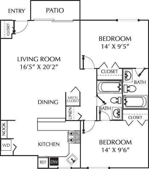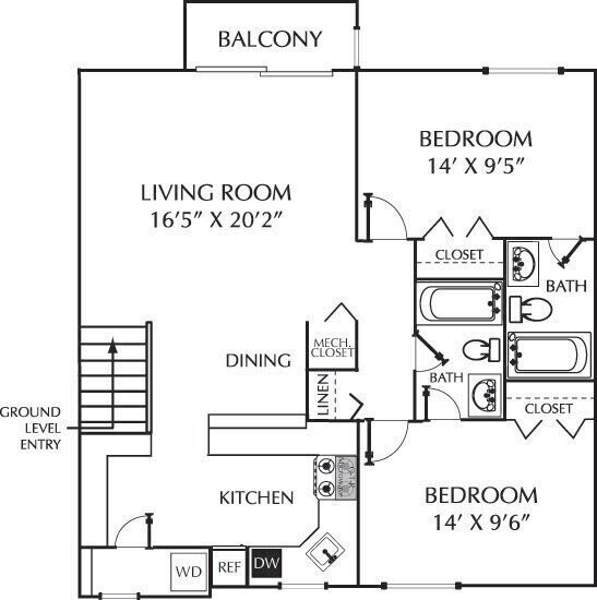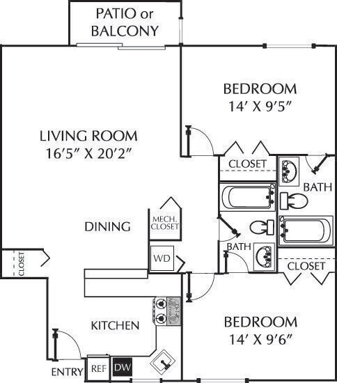 Apartment Model: RoslynFrom $1,7262 Bedroom, 2 Bath, 954 sq ftAvailable NowFloor plans are artist's rendering. All dimensions are approximate. Actual product and specifications may vary in dimension or detail. Not all features are available in every rental home. Prices and availability are subject to change. Base rent is based on monthly frequency. Additional fees may apply, such as but not limited to package delivery, trash, water, amenities, etc. Deposits vary. Please see a representative for details.