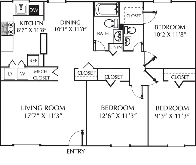 Roslyn - Floorplan 1 Floor plans are artist's rendering. All dimensions are approximate. Actual product and specifications may vary in dimension or detail. Not all features are available in every rental home. Prices and availability are subject to change. Base rent is based on monthly frequency. Additional fees may apply, such as but not limited to package delivery, trash, water, amenities, etc. Deposits vary. Please see a representative for details.