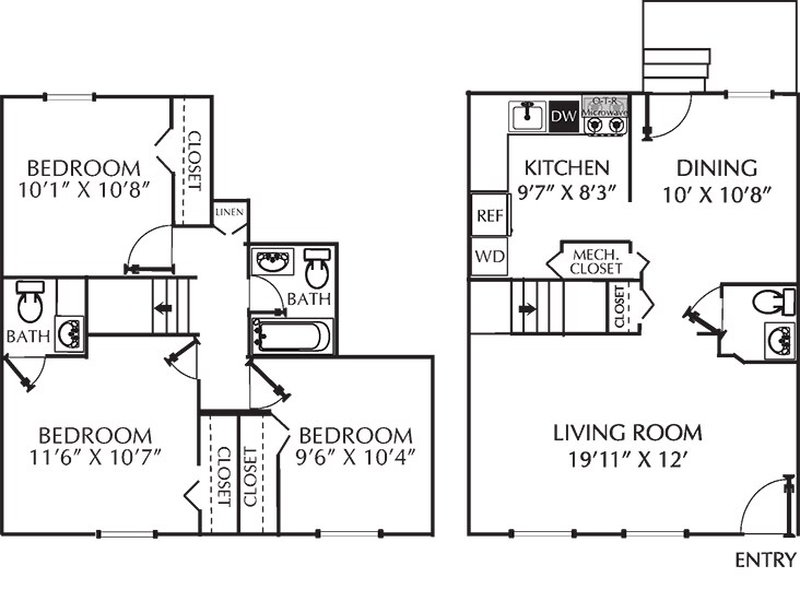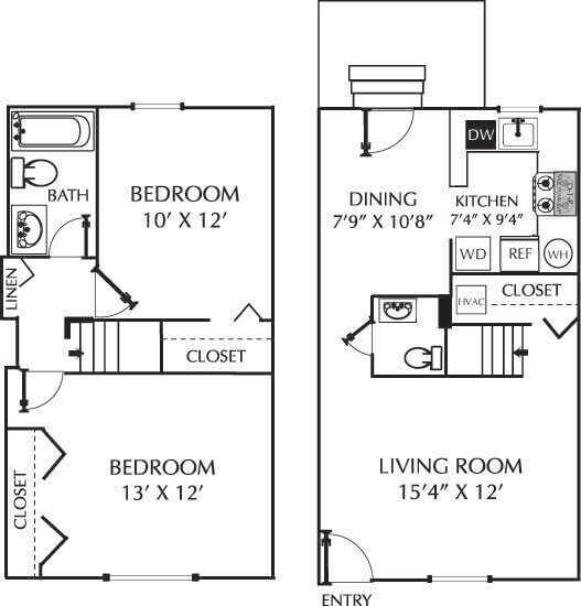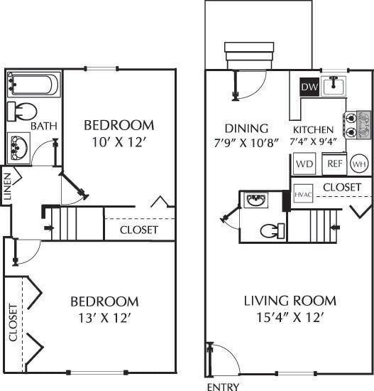 Apartment Model: Clearview TownhouseFrom $1,4962 Bedroom, 1.5 Bath, 934 sq ftAvailable NowFloor plans are artist's rendering. All dimensions are approximate. Actual product and specifications may vary in dimension or detail. Not all features are available in every rental home. Prices and availability are subject to change. Base rent is based on monthly frequency. Additional fees may apply, such as but not limited to package delivery, trash, water, amenities, etc. Deposits vary. Please see a representative for details.