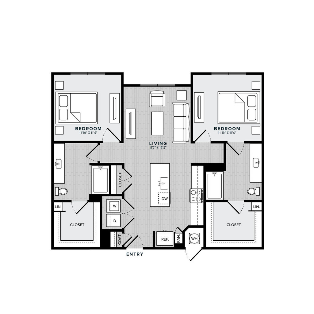 Apartment Model: B2From $1,7202 Bedroom, 2 Bath, 1185 sq ftAvailable Now![]()