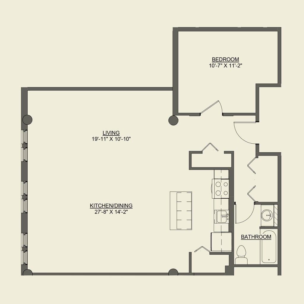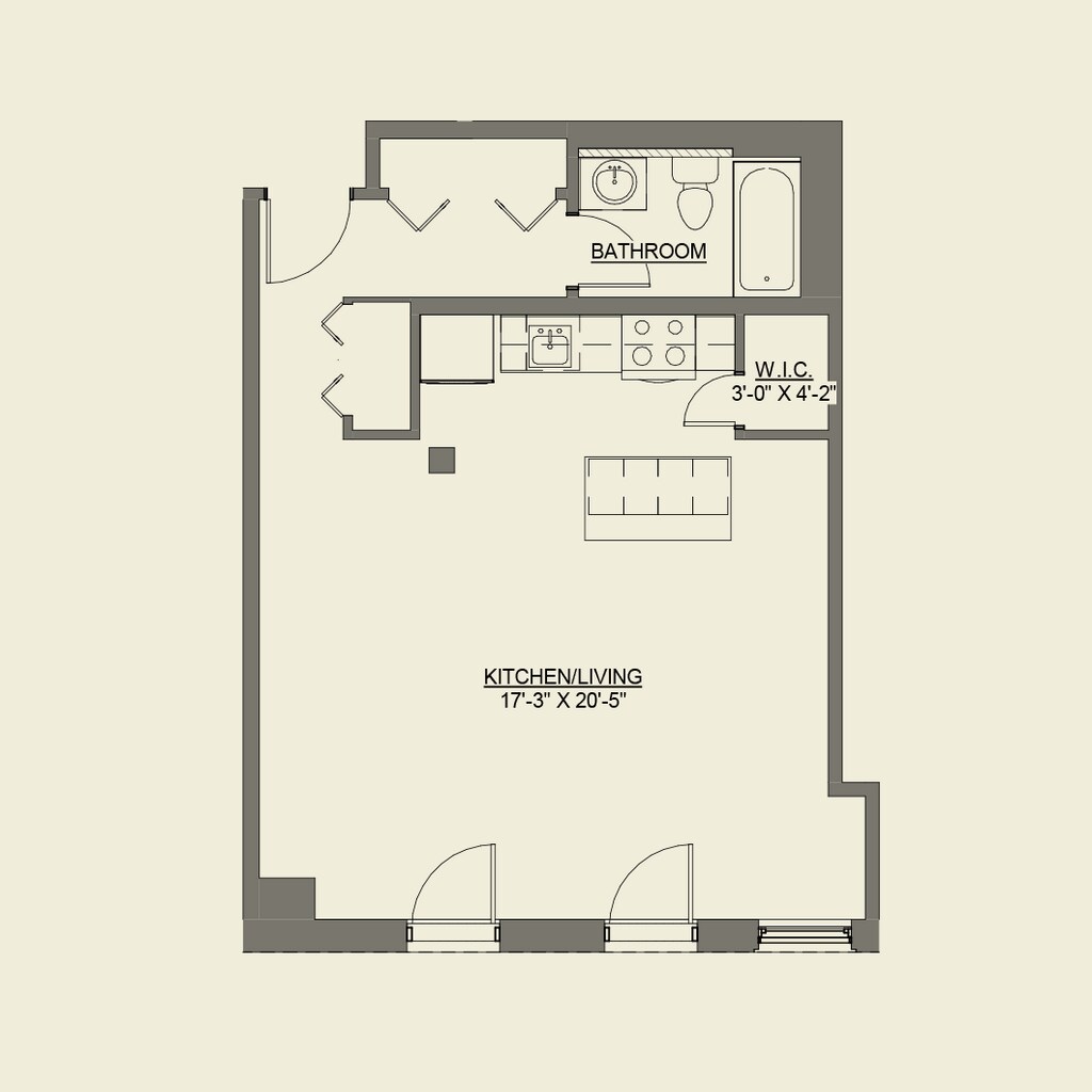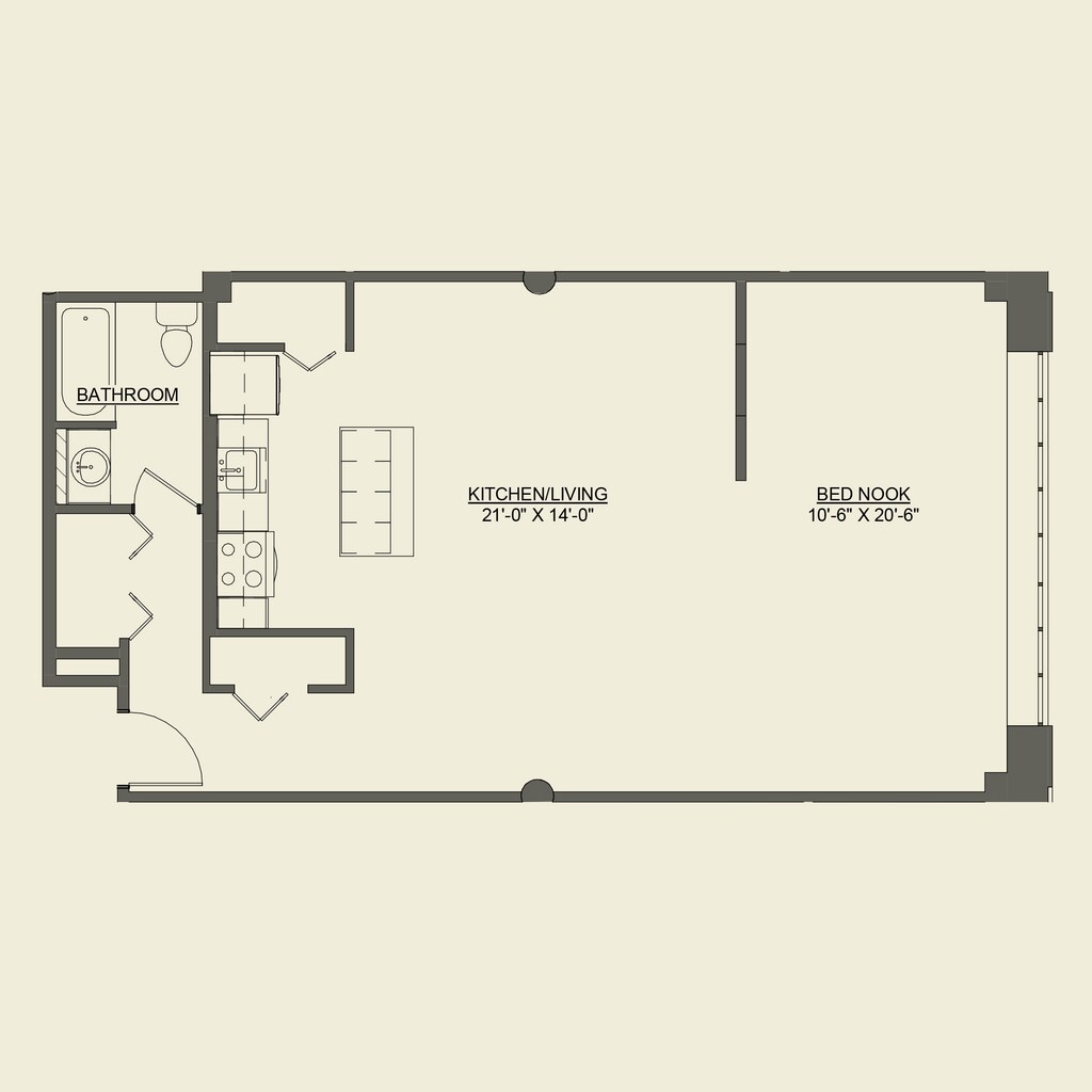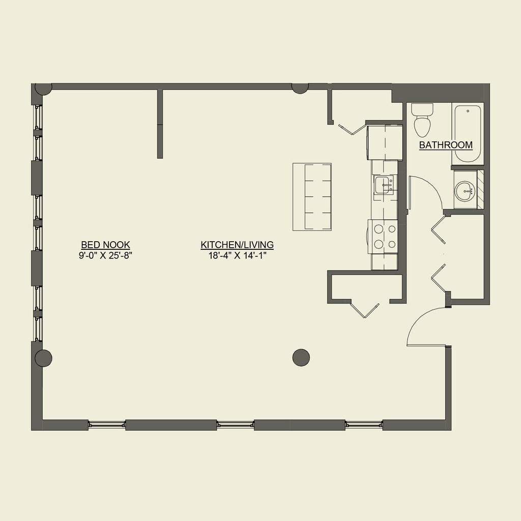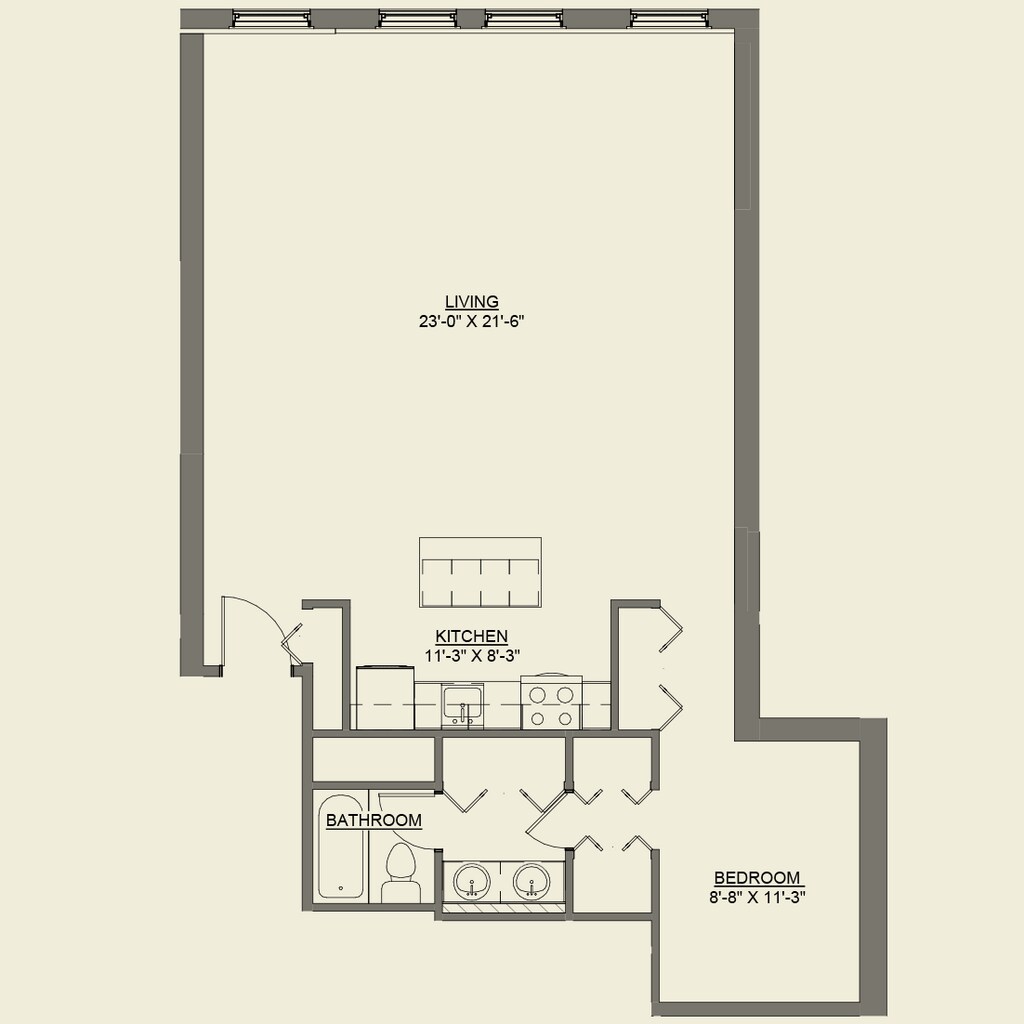 Studio, 1 Bath, 599-603 sq ftAvailable NowModel Gallery