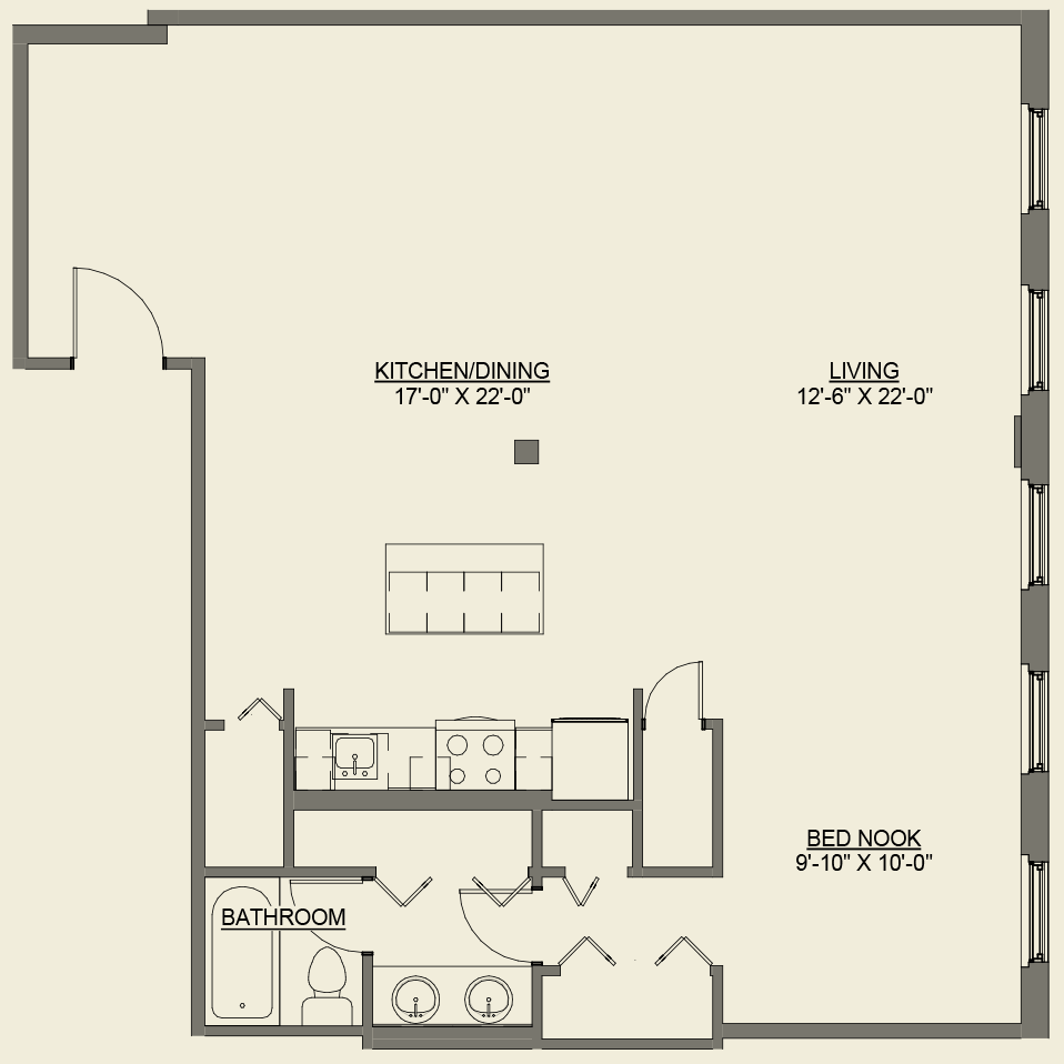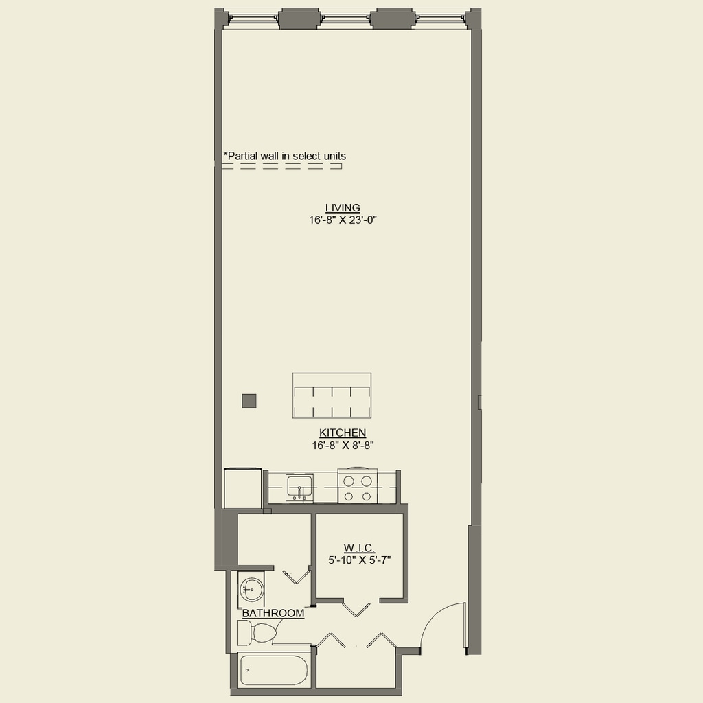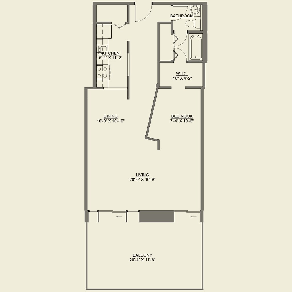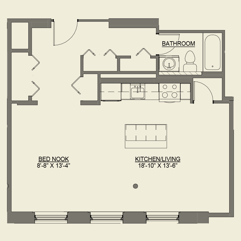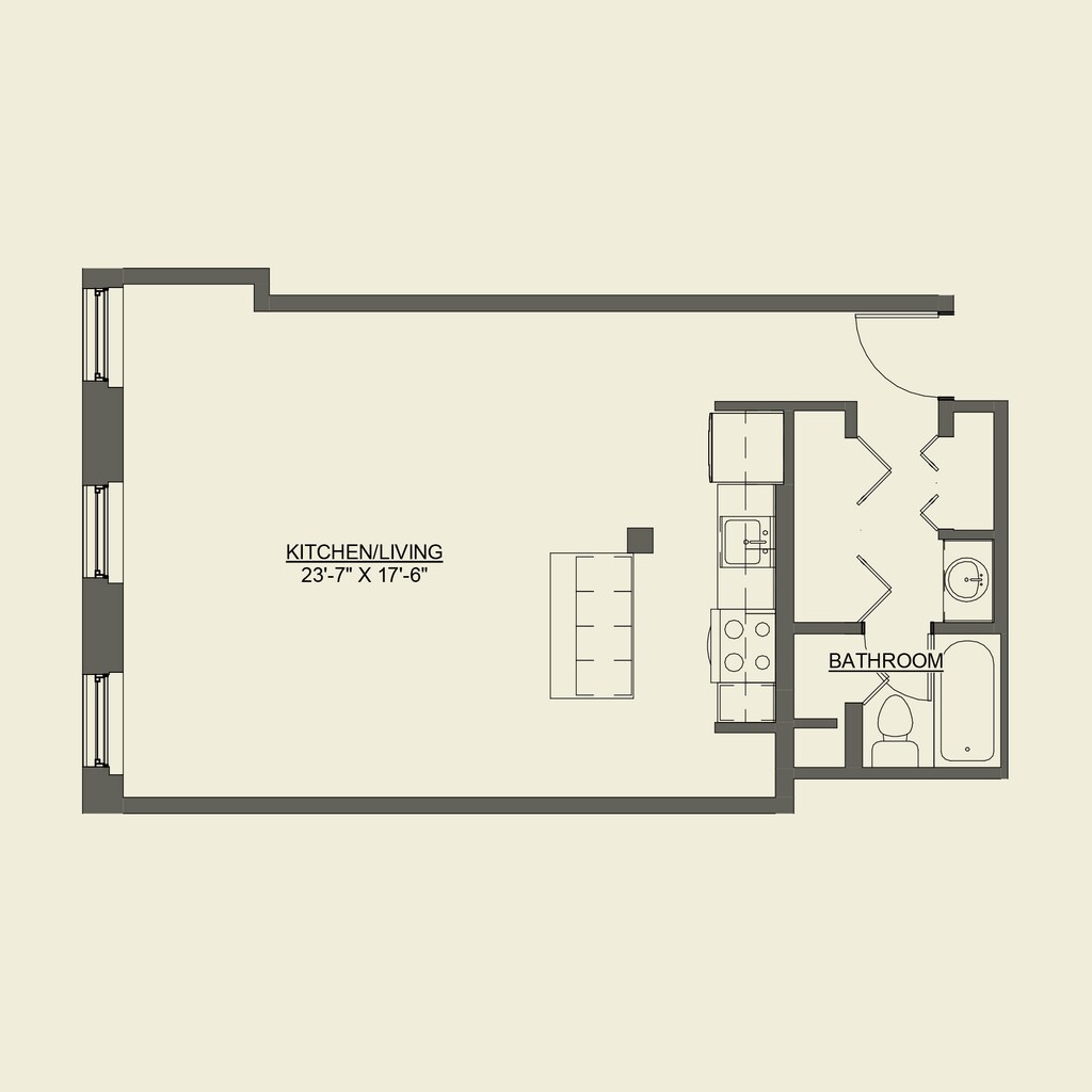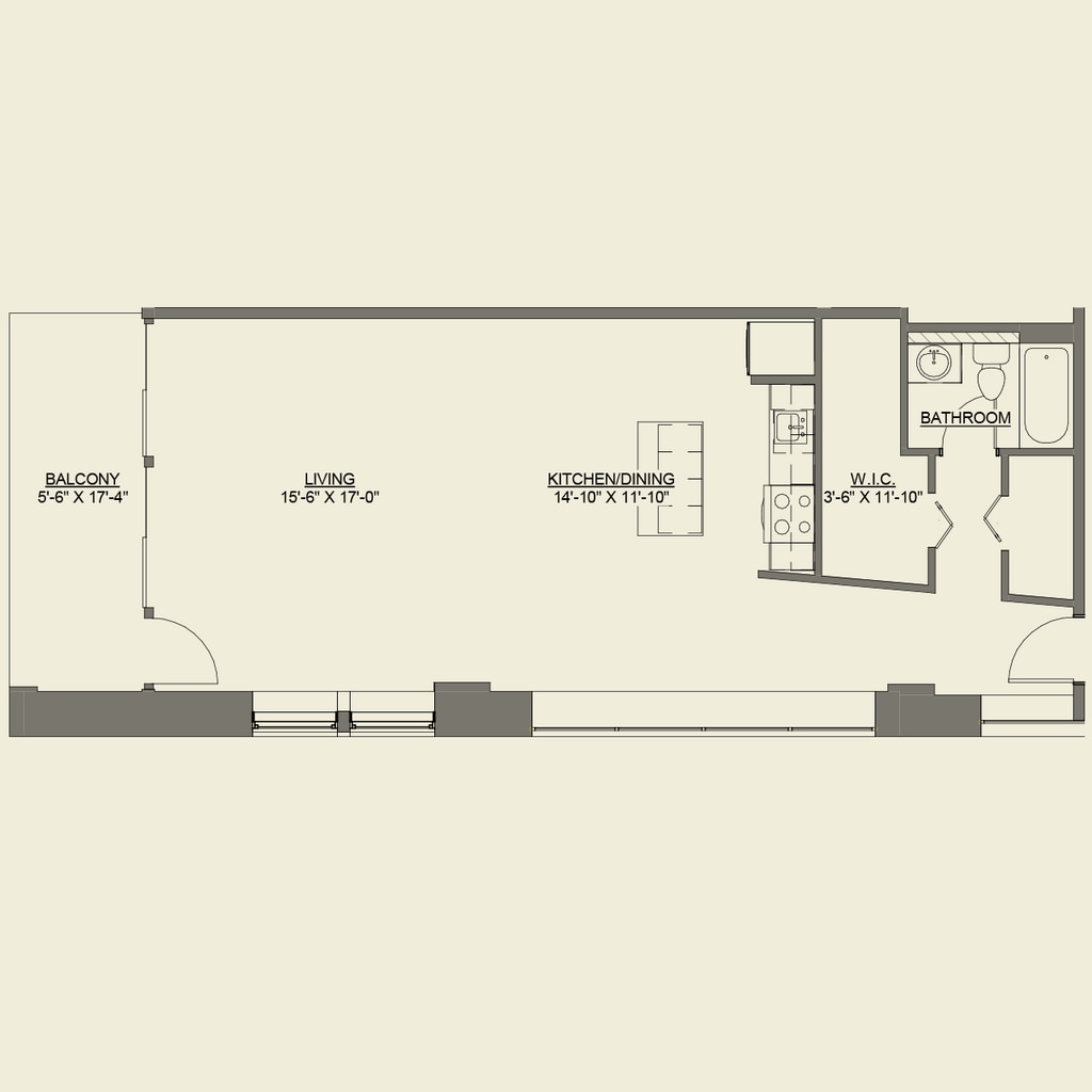 Studio, 1 Bath, 599-603 sq ftAvailable NowModel Gallery