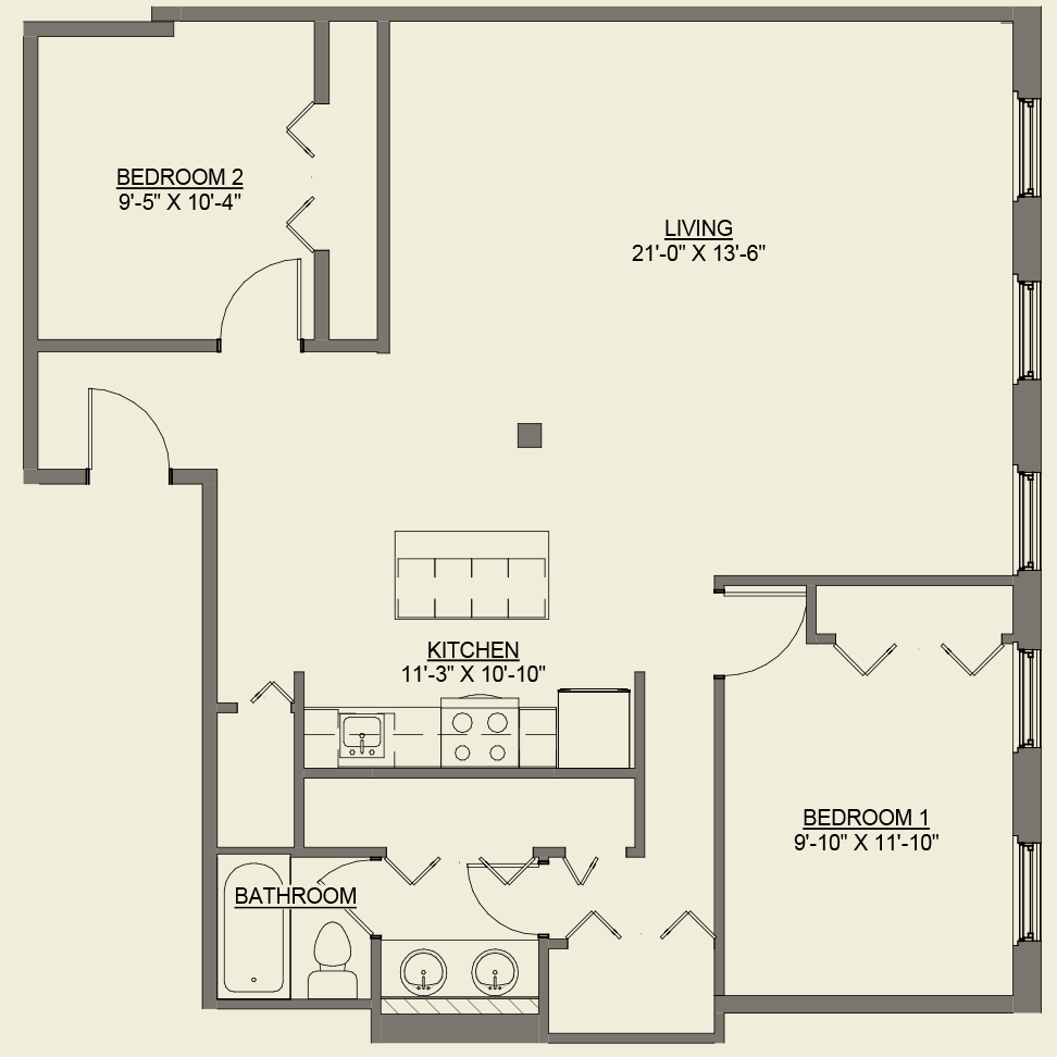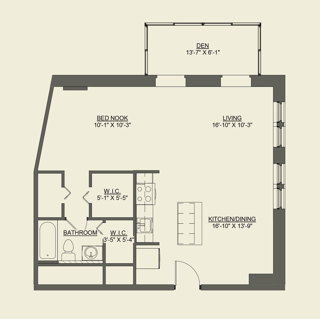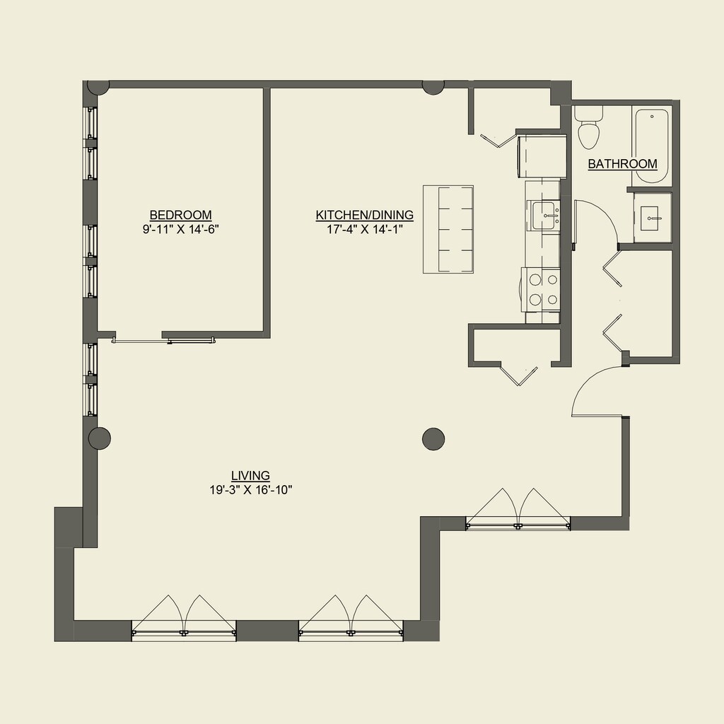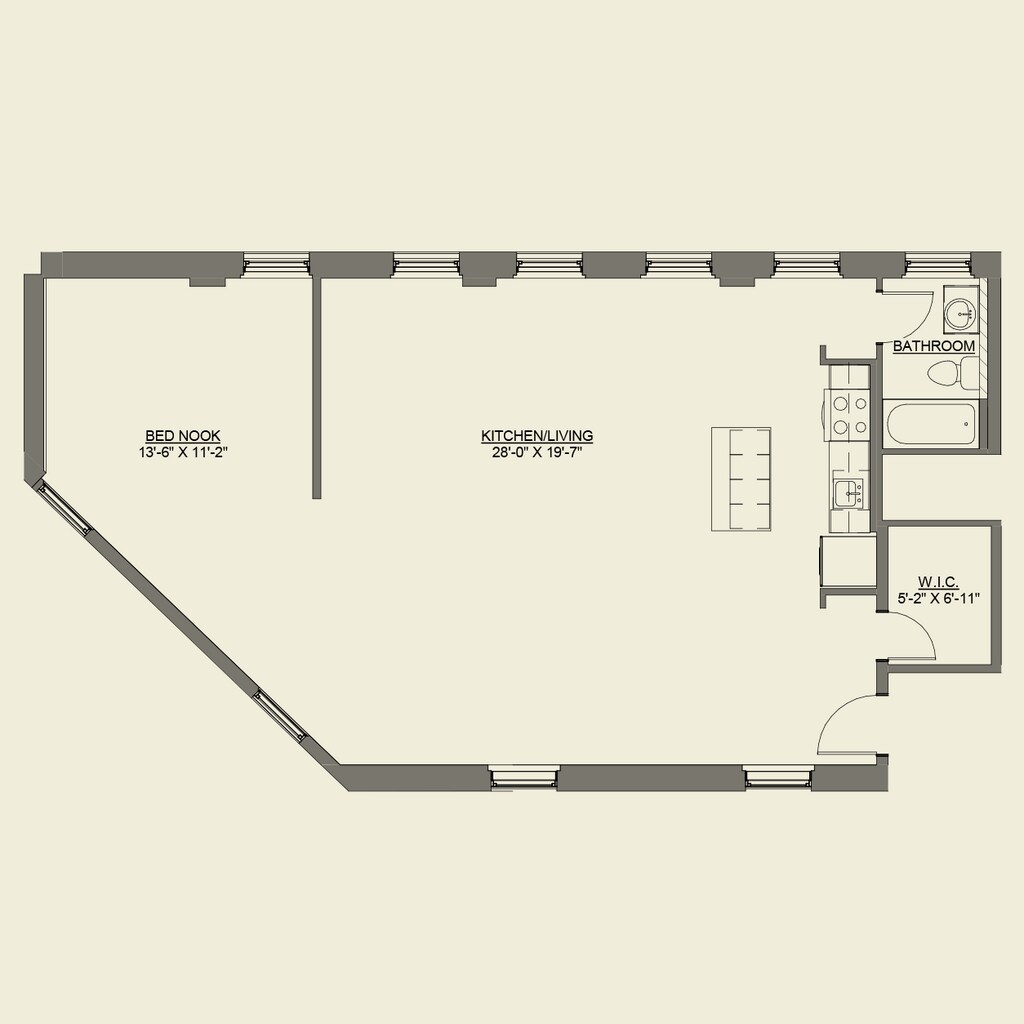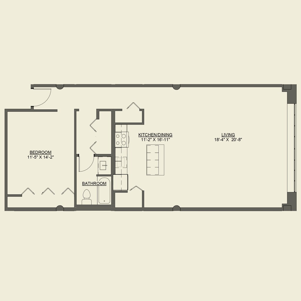 Studio, 1 Bath, 599-603 sq ftAvailable NowModel Gallery